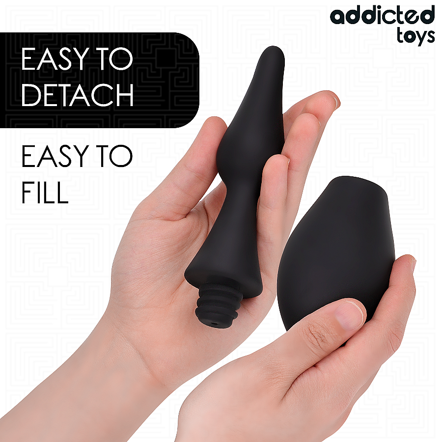 The Addicted Toys Travel Cleaner Silicone Model 1 anal shower is designed for comfortable and thorough rinsing before and after intimate moments. With a total height of 230 mm, it holds well and allows for precise, controlled application. The insertion length of 135 mm safely reaches the required depth and ensures effective rinsing. The 100 mm high balloon fits in your hand and allows you to sensitively regulate the pressure. The 65 mm balloon width provides sufficient volume for a smooth rinse without unnecessary interruptions. The 37 mm wide attachment supports a smooth flow, so cleaning is fast and comfortable. The 160 ml capacity is enough for several short cycles without the need for frequent refilling. The durable silicone design is soft to the touch, easy to maintain and ideal for travel thanks to its compact dimensions and ergonomic shape.