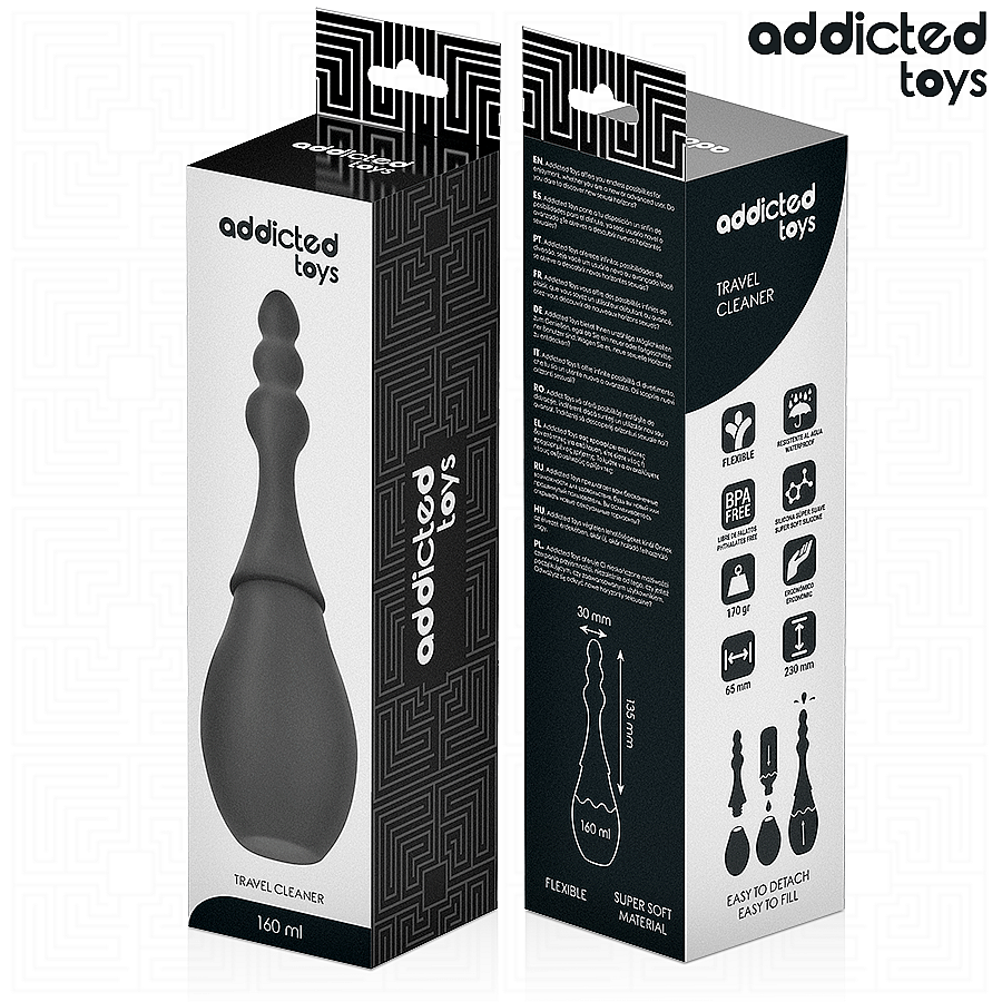 The Addicted Toys Travel Cleaner Silicone Model 4 anal shower is designed for comfortable and thorough rinsing before and after intimate moments. With a total height of 230 mm, it holds well and allows for precise, controlled application. The insertion length of 135 mm safely reaches the required depth and ensures effective rinsing. The 100 mm high balloon fits in your hand and allows you to sensitively regulate the pressure. The 65 mm balloon width provides sufficient volume for a smooth rinse without unnecessary interruptions. The 30 mm wide attachment supports a smooth flow, so cleaning is fast and comfortable. The 160 ml capacity is enough for several short cycles without the need for frequent refilling. The durable silicone design is soft to the touch, easy to maintain and ideal for travel thanks to its compact dimensions and ergonomic shape.