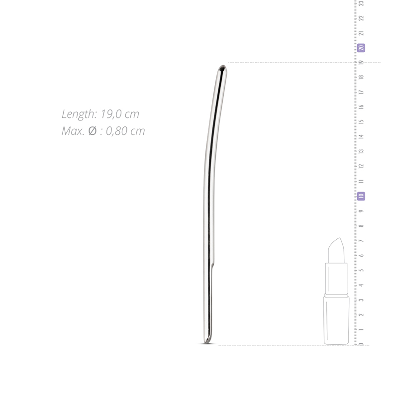 Kovový dilatátor ve stříbrném provedení se zaoblenou špičkou má příjemně hladký a tvarovaný povrch, díky němuž se snadněji zavádí do močové trubice muže. Dokonale stimuluje a způsobuje nezapomenutelné zážitky. Konec dilatátoru je plochý pro lepší manipulaci s dilatátorem. Dilatátor je vyroben z nerezové oceli.