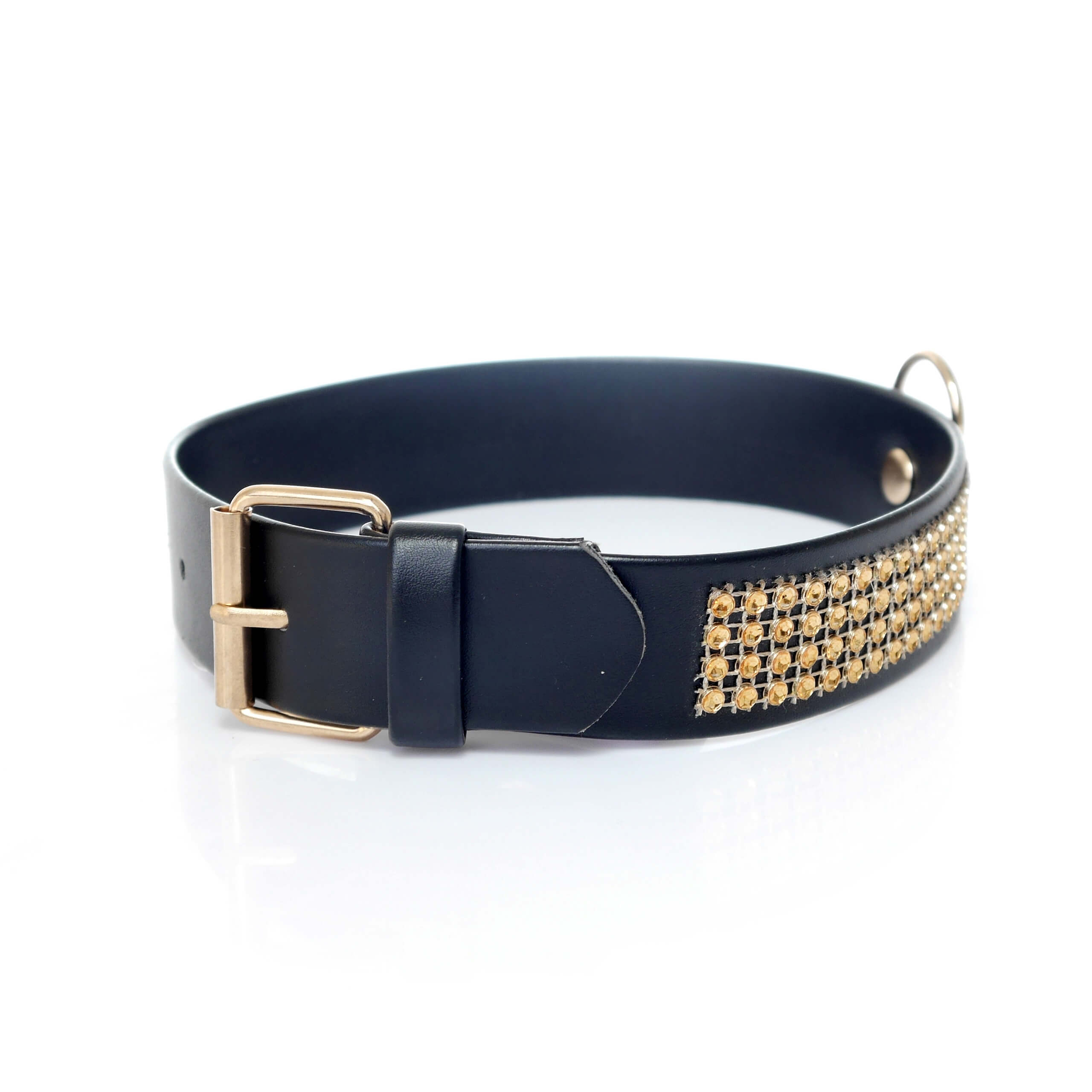 Awaken the seductive beast in you and let yourself be carried away into a world of sensual pleasures with the Collar Golden Crystals. Get this must-have accessory today and become the unforgettable star of any game.