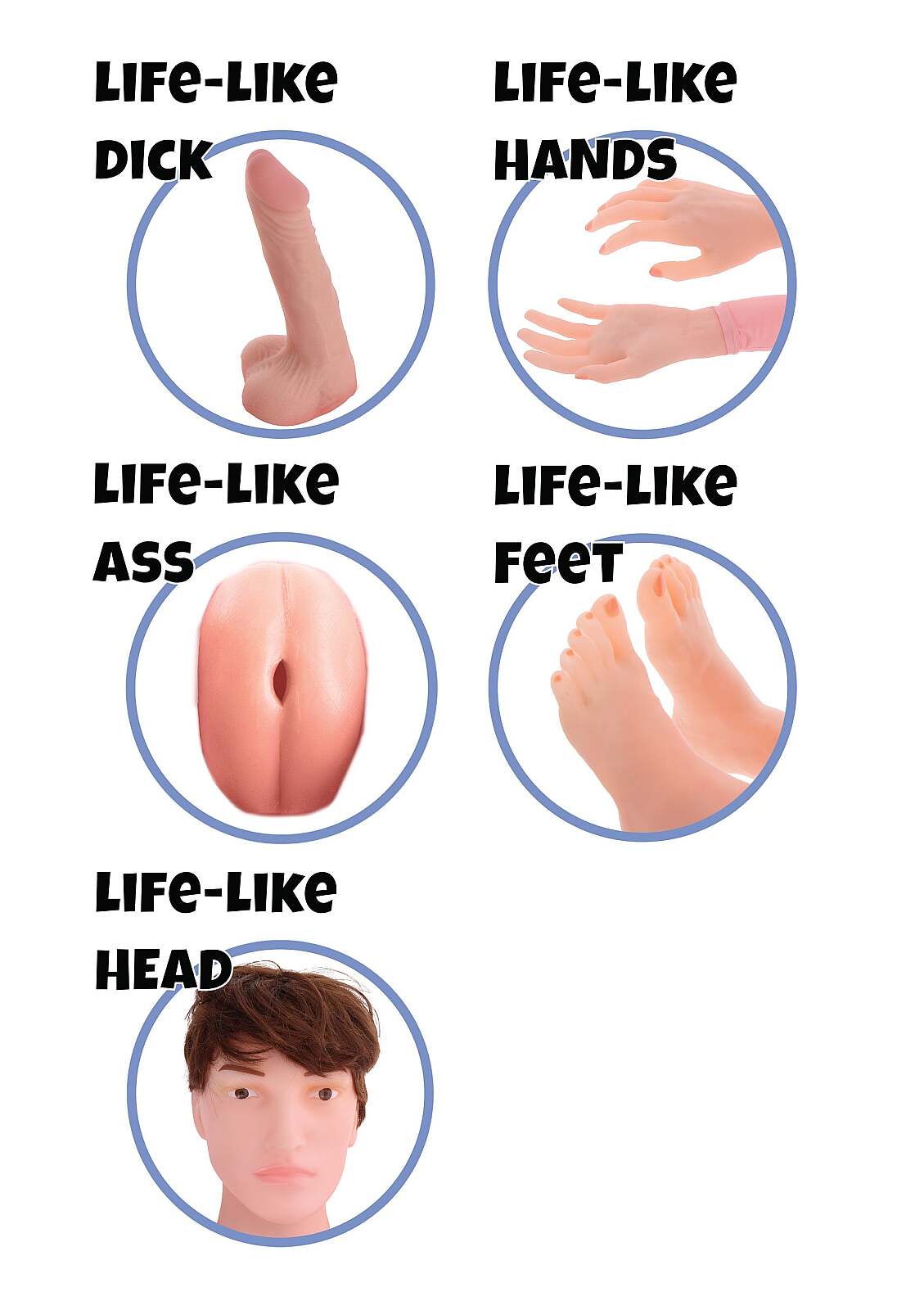 - Features: vibrating, inflatable, life-size, realistic body, tight anal opening