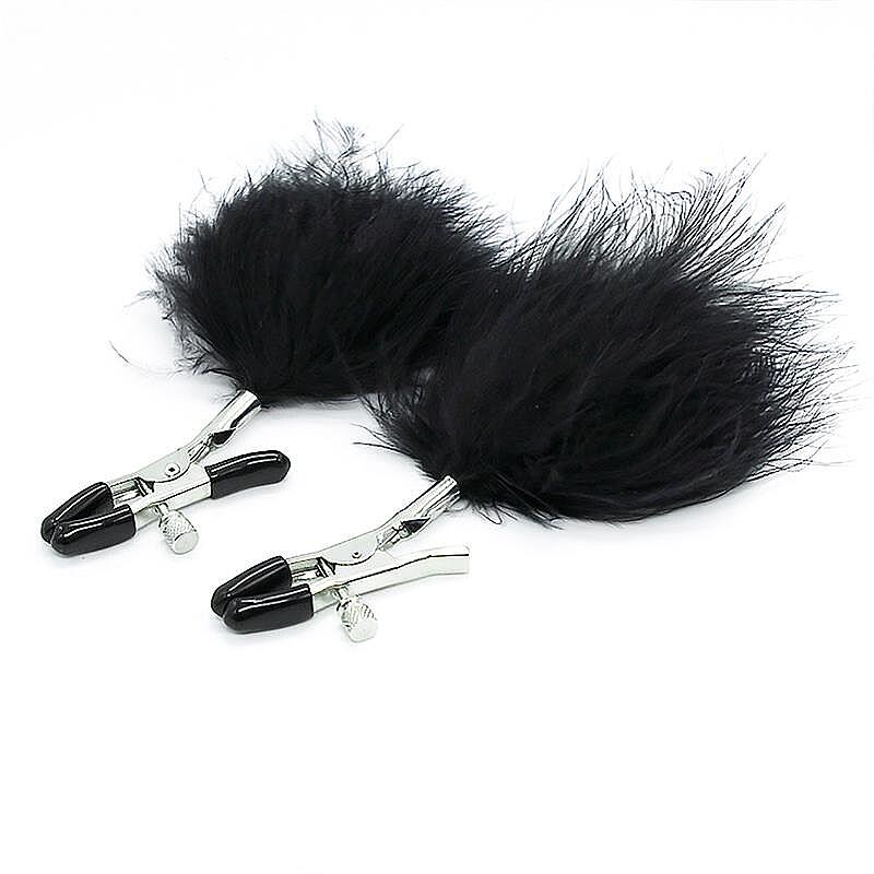 LATETOBED BDSM LINE Nipple Clamps with Black Feather by LATETOBED are made for lovers of intense, darker pleasures. The fully adjustable design lets you fine-tune the pressure to match your mood, whether you crave a light pinch or a more daring squeeze. Protective covers help shield delicate skin from discomfort, making wear more comfortable and controlled. At the ends, long black feather accents sway and brush against the body with every step, adding extra flirtation, erotic tension and playful sensation. This accessory beautifully combines visual allure with direct stimulation, making it an exciting choice for power play, teasing and attention-commanding seduction.