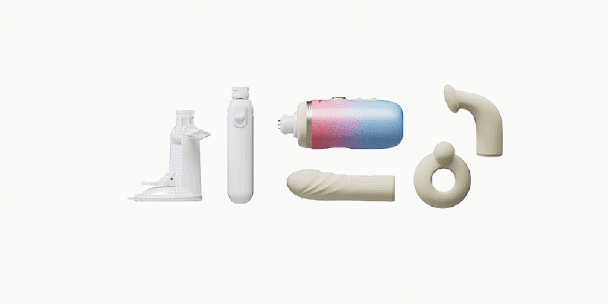 - Attachments included: straight dildo attachment, curved G-spot attachment, clitoral base