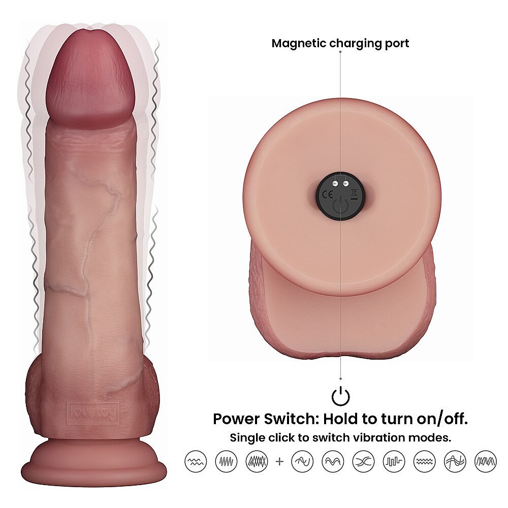 Lovetoy Sliding Skin Pro II 8" Vibrating Silicone Dong by Lovetoy brings second-generation sliding-skin technology to a more refined and pleasurable level. Its advanced medical-grade silicone outer layer feels softer, finer, and more comfortable against the body, while the firmer inner core creates a convincing erect feel for more authentic stimulation. The dual-density construction heightens realism and gives every movement a deliciously natural response. With 10 powerful vibration modes, this dong offers a versatile range of sensations, from gentle teasing to more intense erotic play. The wireless remote control makes operation effortless and opens the door to more playful solo sessions and partner exploration. USB-rechargeable functionality adds convenience, making it easy to enjoy again and again without the hassle of disposable batteries. Its realistic shaft, tactile detailing, and lifelike sliding-skin finish create a sensual experience that is immersive, durable, and delightfully provocative. For the smoothest glide and maximum pleasure, pair it with a water-based lubricant.