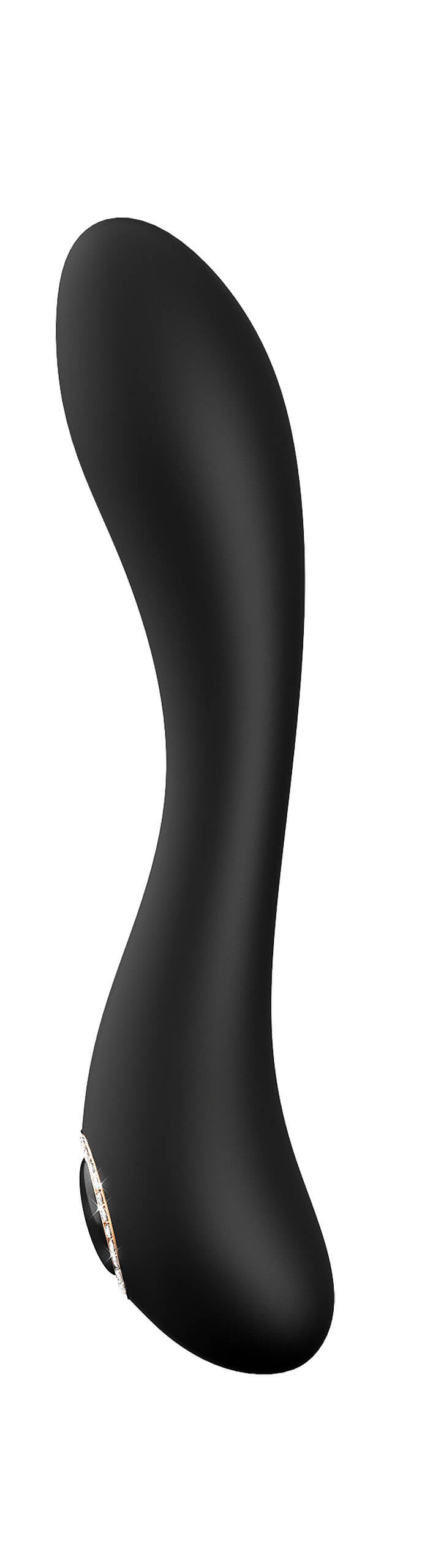 Black vibrator with a stylish button in the shape of a gem and a large head.