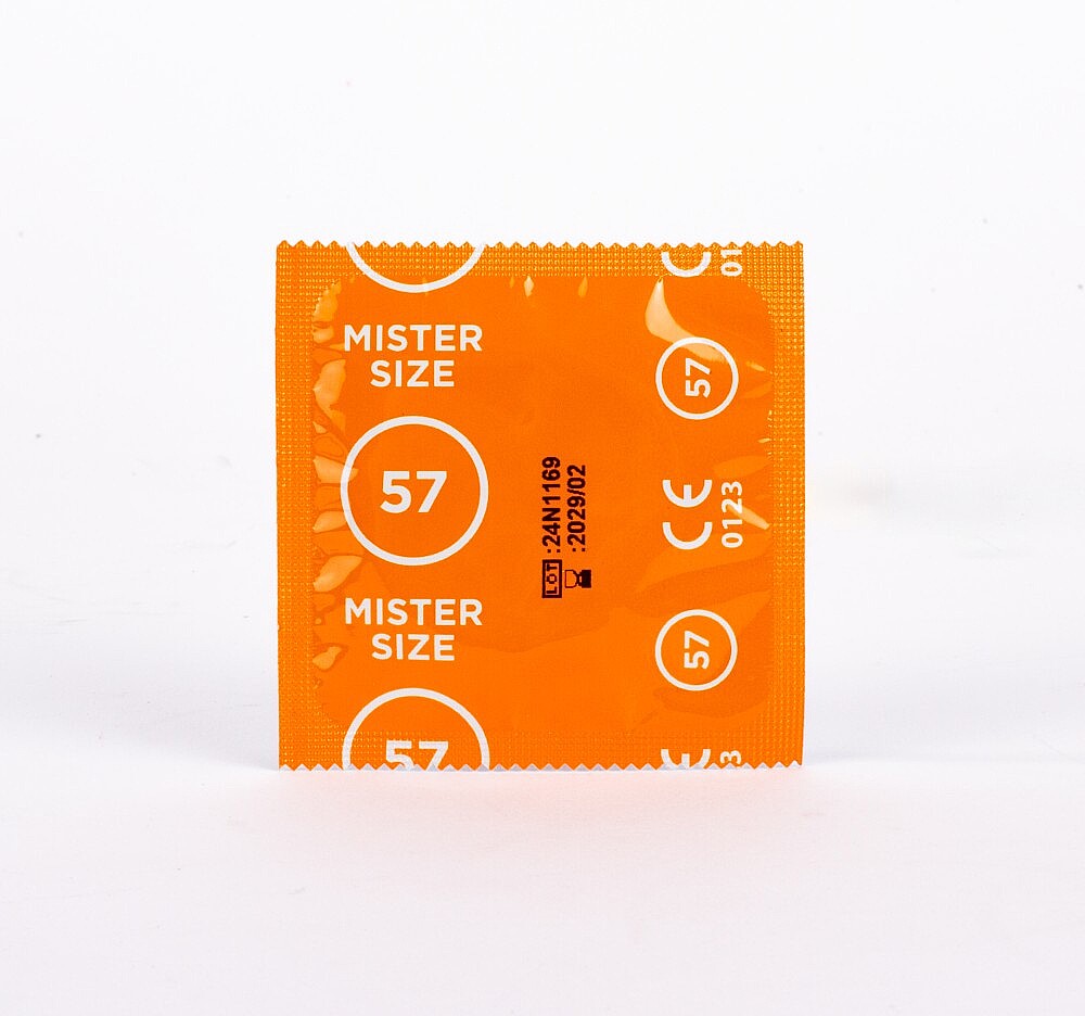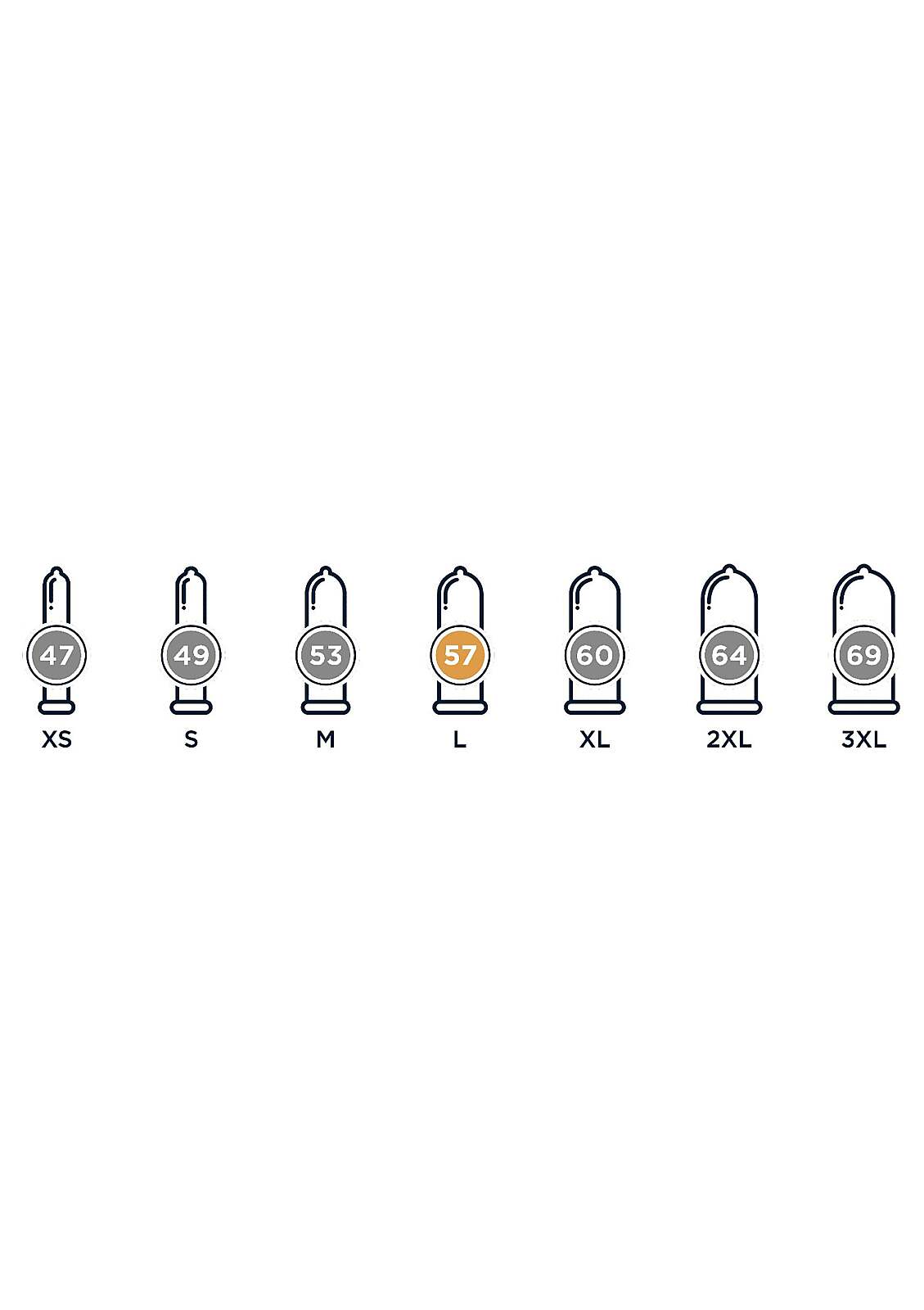 With MISTER SIZE CONDOM SIZE L 57mm, enjoy an irresistibly natural feel thanks to an ultra-fine 0.05 mm thickness that amplifies every move. Precision size fine-tuning ensures the L fit stays secure and non-slip on slimmer penises. Natural rubber latex is transparent and smooth, highlighting closeness and visual allure. The pre-lubricated surface delivers effortless gliding and uninterrupted rhythm. A reservoir tip adds peace of mind when things heat up. Vegan composition means a conscious choice without compromise. The 57 mm nominal width is tailored for a 12–13.5 cm penis circumference—snug, safe, and all about pure pleasure.