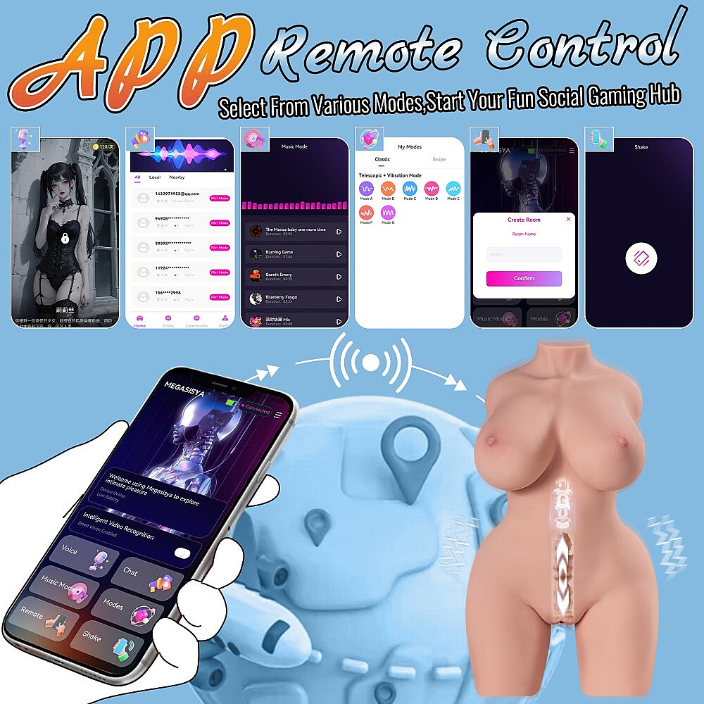 Indulge in realistic pleasure with a torso that responds exactly the way you want. Launch the app, set your rhythm, and let the vibrations and motions take over.