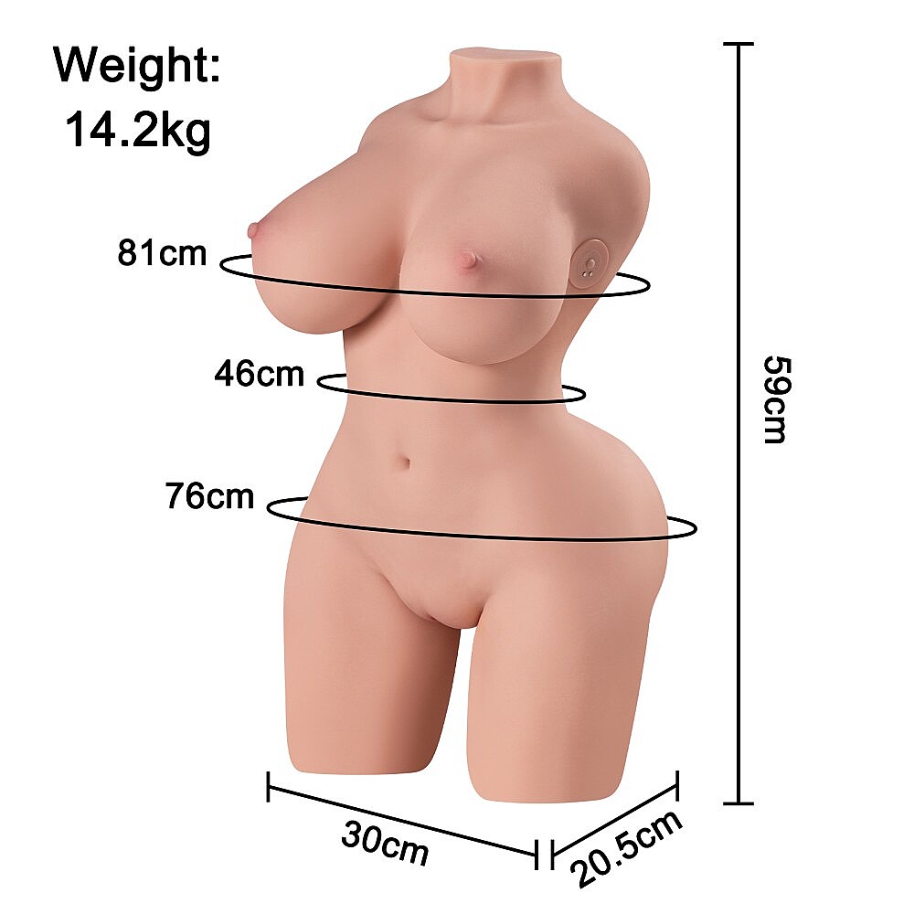 - Features: breasts and vagina-shaped opening, vibrating, realistic build