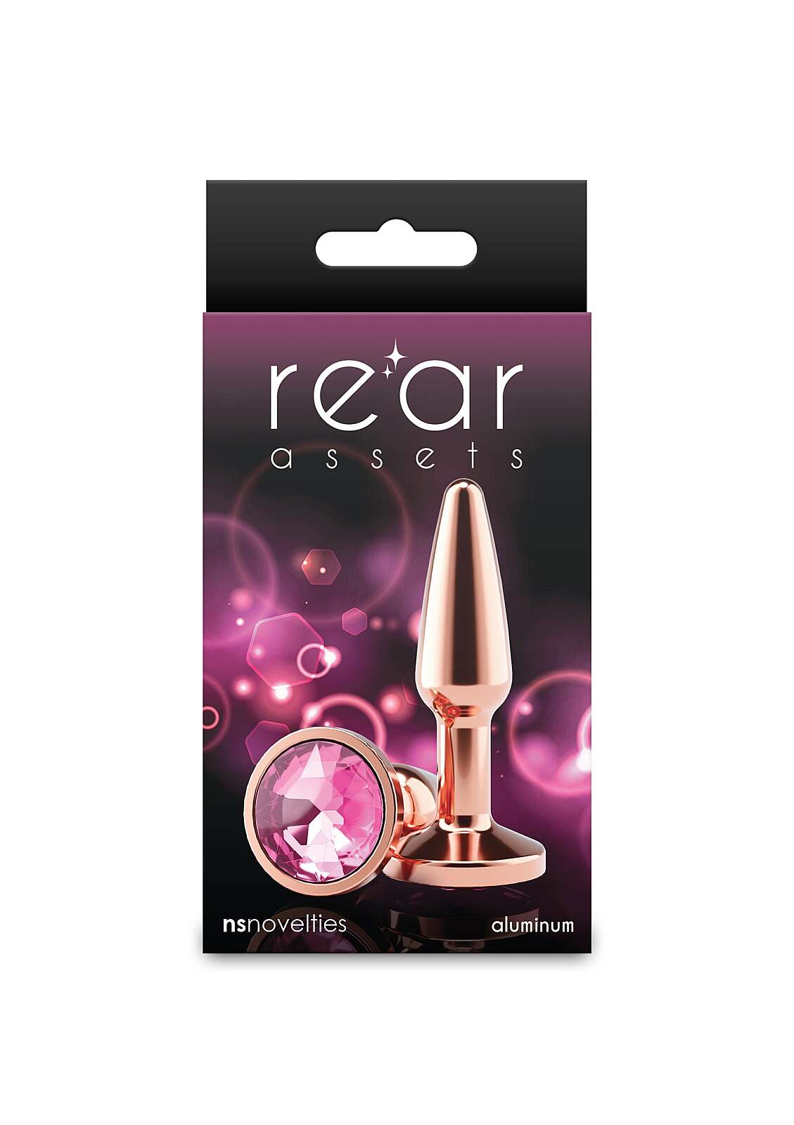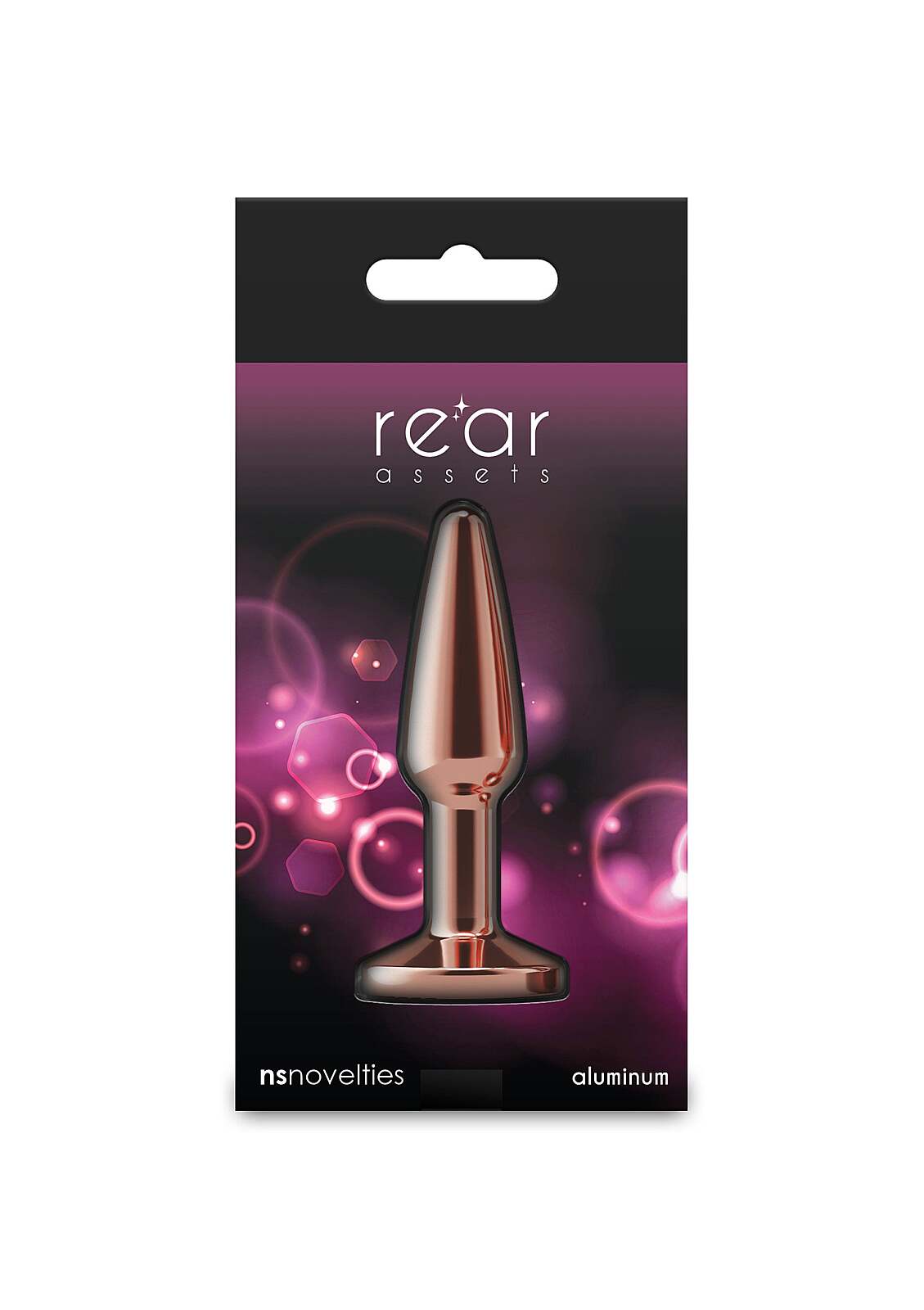 NS Novelties Rear Assets Tapered Plug Small (Rose Gold) is a chrome-plated anal toy designed for both visual appeal and sensual play. Its tapered shape supports smooth, easy insertion and better control as you build intensity at your own pace. Made from lightweight, body-safe aluminum with acrylic elements, it delivers a polished, refined feel without being heavy in hand. It’s also compatible with all lubricants, so you can pair it with your favorite formula for the slick, comfortable glide you want.