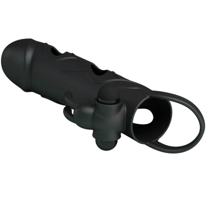 "Pretty Love Penis Sleeve vibrating sleeve offers intense stimulation for a woman and at the same time allows a man to prolong his erection. The double vibration in the rabbit at the root and at the tip of the sleeve brings unforgettable experiences for both partners. The sleeve is made of soft, flexible medical silicone, which is very pleasant to the touch.It is waterproof and easy to clean.