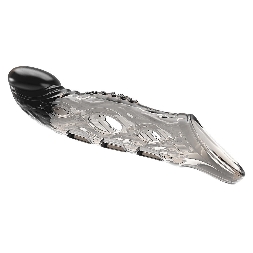 Pretty Love Wayde (Clear) by Pretty Love is a cheeky vibrating penis sleeve that stretches smoothly thanks to its soft, elastic TPE and hugs you comfortably. The testicle loop keeps everything steady so you can focus on pure pleasure. A small yet powerful mini vibrator pulses inside, adding electric waves of stimulation with every thrust. The extended tip brings deeper sensations for her while helping you achieve a firmer, longer-lasting erection. Its flexible body feels great on skin, and each vibration plays with sensitive spots to turn foreplay and intercourse into a long, exciting adventure. With stable hold, easy wear, and intense stimulation zones, Pretty Love Wayde (Clear) invites you to explore tender teasing and bold passion together.