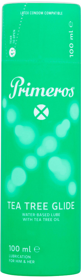Lubrikační gel Primeros tea tree aroma na vodní bázi s přísadou tea tree oil přináší dlouhotrvající zvlhčení a maximální potěšení z intimního styku. Je ve vodě rozpustný, nedráždí a nebarví. Je vhodný pro použití současně s kondomy.