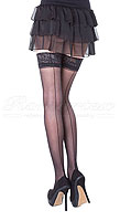 Hladké samodržící punčochy s krajkou vysokou 10 cm a zadním švem.