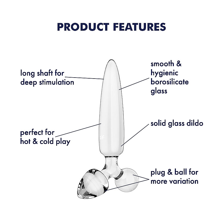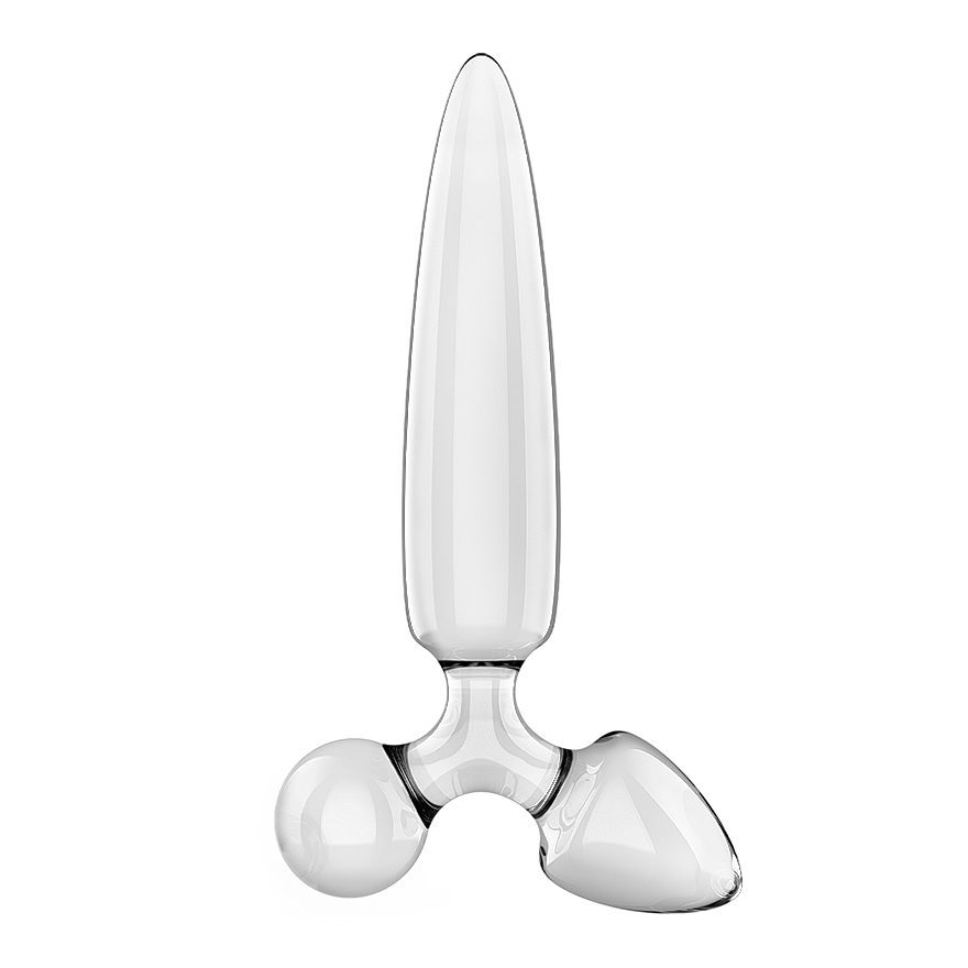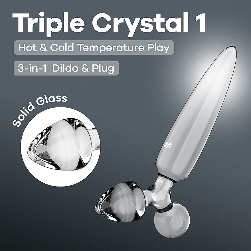 Satisfyer Triple Crystal 1 (Transparent) is a sensual glass dildo delivering triple bliss. Its 21 cm tapered shaft dives exactly where you want it, while two smaller, differently shaped plugs invite you to switch tempos and sensations. The silky-smooth surface glides like satin and, with a drop of lube, turns into a seamless dance across your curves. Temperature-resistant borosilicate glass unlocks hot and cold play—warm it in water or chill it in the fridge and let your nerve endings sparkle. The wide base keeps everything safely anchored, making it an ideal choice for anal pleasure too. The unisex design welcomes solo play and partner foreplay alike—on clitoris, vagina, and anus—and even doubles as a luxurious full-body massager. Durable glass is shatterproof, lightweight, hygienic, and easy to clean. Satisfyer Triple Crystal 1 (Transparent) is a crystal invitation to precise stimulation that pampers every millimeter of your body.