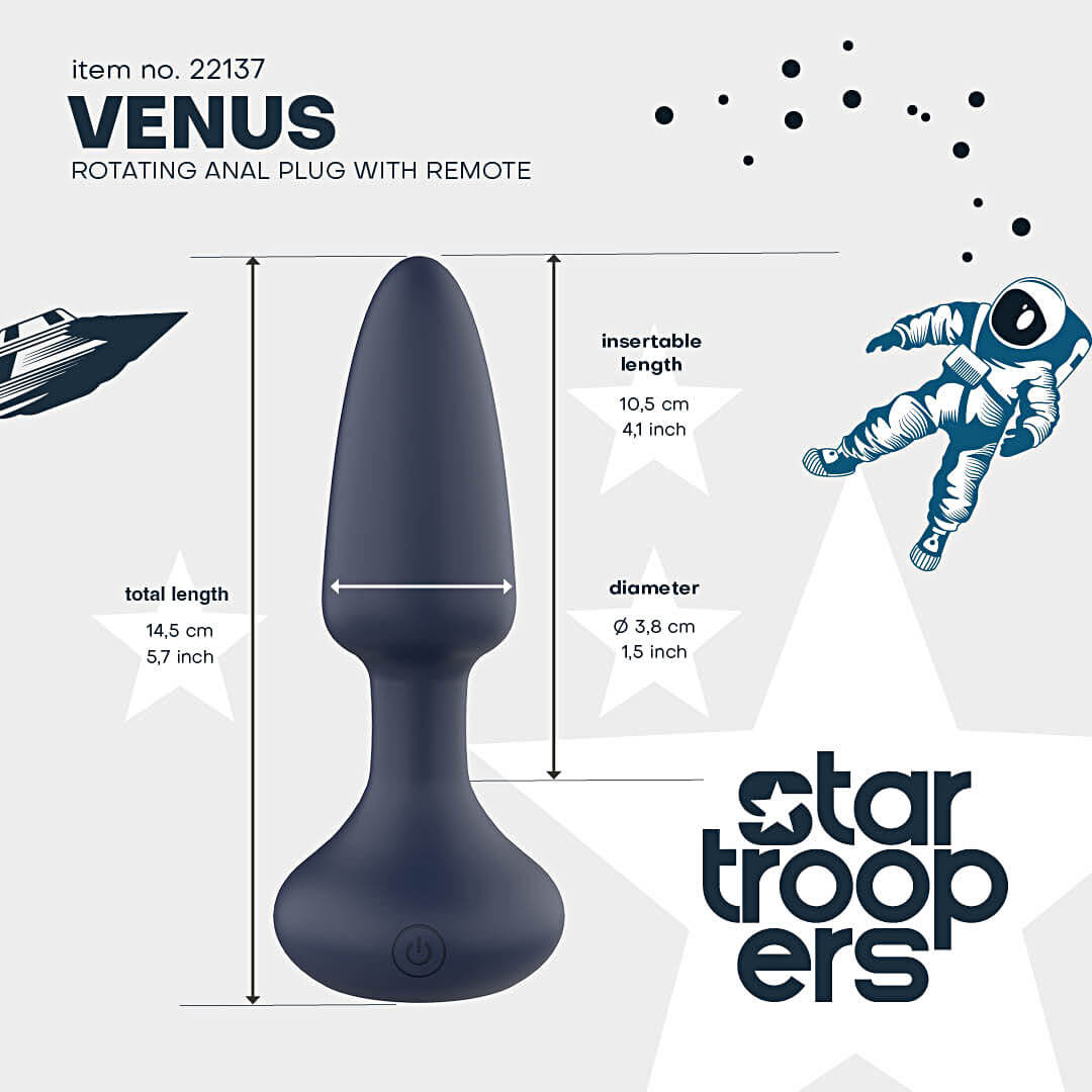 Don't miss the opportunity to explore new realms of pleasure with the Startroopers Venus Rotating Anal Plug. Its innovative design, premium materials and customizable settings make it a must-have product for anyone looking for a way to spice up their sex life.