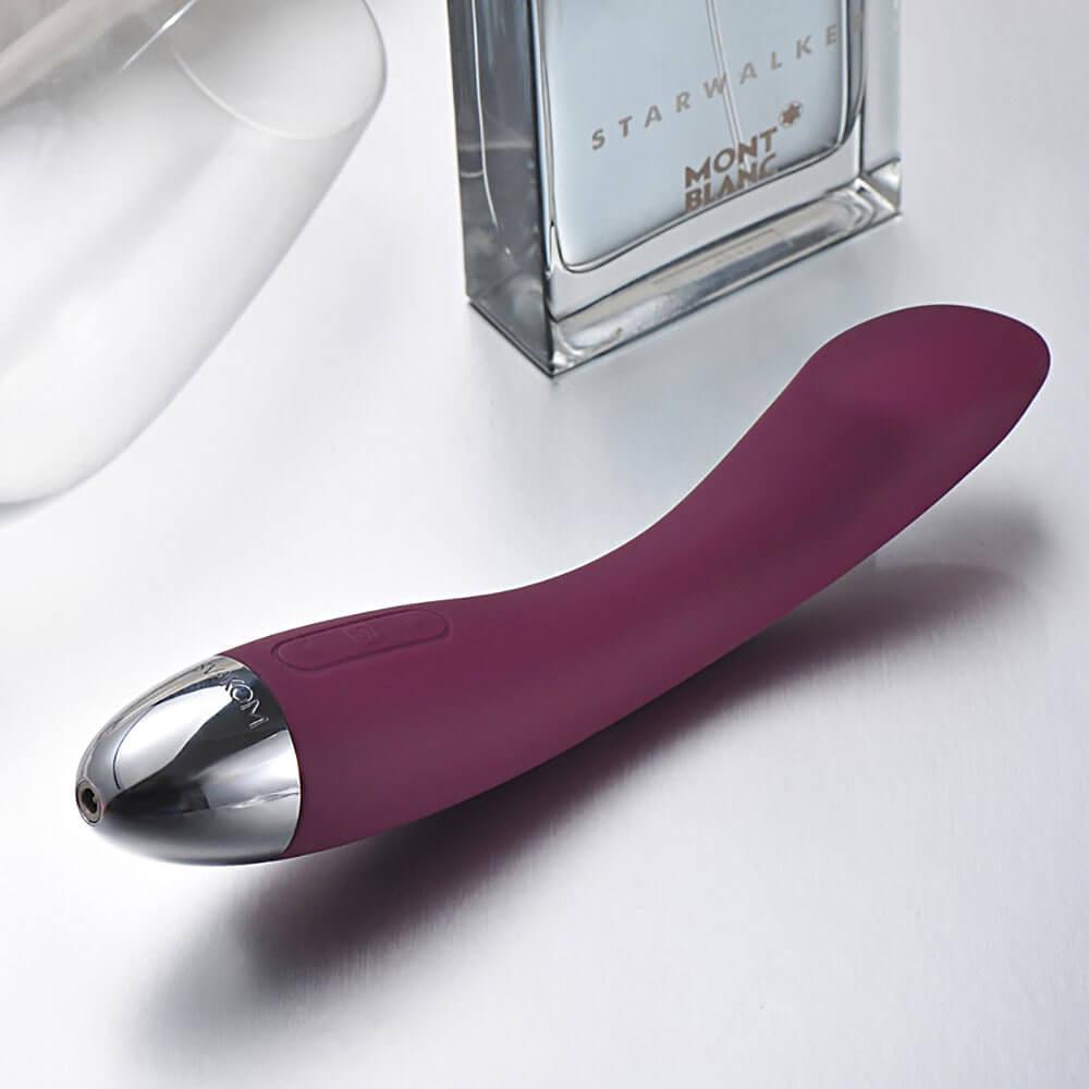 Svakom Amy G-Spot Vibrator - Your personal journey to intense pleasure. Very elegant and high quality. This luxurious vibrator is designed to give you the most intimate and intense pleasure you've ever experienced. Svakom Amy is your secret weapon for evenings of pleasure and passion. Curved shape for maximum stimulation - Amy is uniquely shaped to best stimulate the G-spot. This elegant weapon of pleasure will take you to realms you've always dreamed of but never known. Waterproof design for playful fun - With a waterproof (IPX7) body, Amy is a great companion for your hot baths or cool swimming pools. Let the waves of pleasure wash over you wherever you are. Choice of vibration programs for different moods - With 5+1 vibration programs, Amy is always ready to adapt to your needs. From a gentle whisper to a powerful blast, it's up to you what you choose. Extra smooth silicone for a comfortable touch - Amy is made of premium silicone to give you the smoothest, most comfortable feel. It's so light you can hardly feel it - just pleasant waves of pleasure coursing through your body.