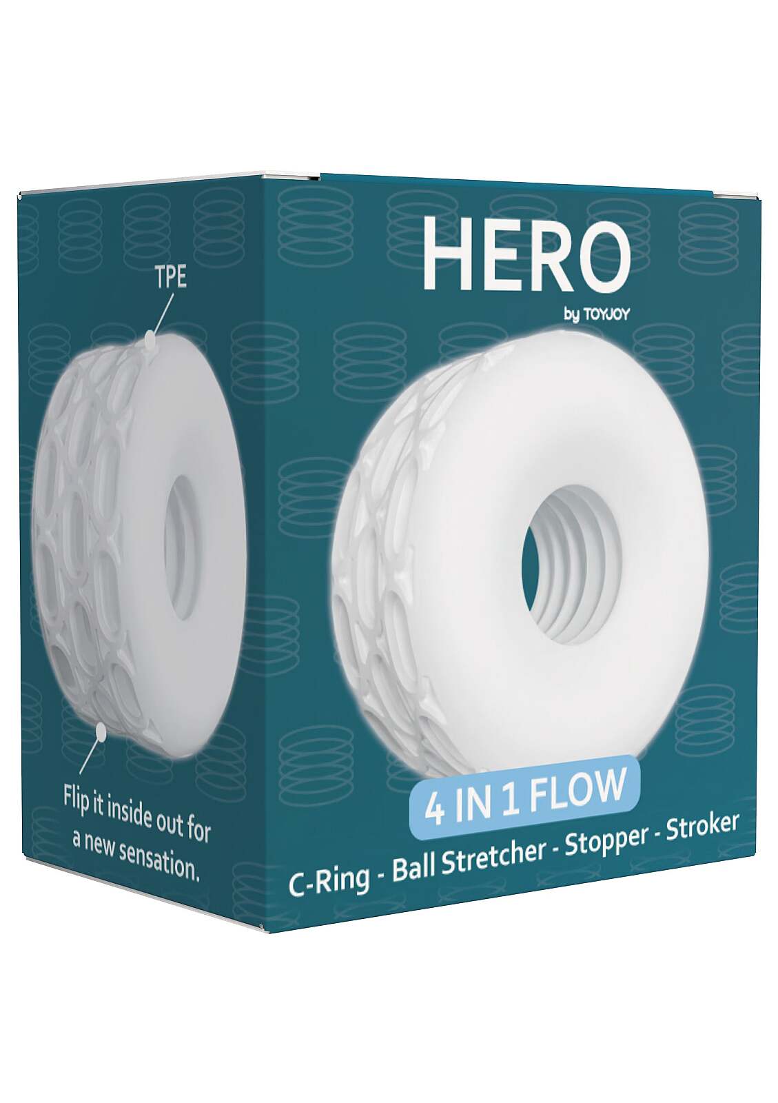 ToyJoy 4-in-1 Flow Ring (White) by ToyJoy is a super-stretchy, ergonomic ring designed for four thrilling uses. As a C-ring, it boosts stamina and hardness for stronger, longer climaxes. As a ball stretcher, it adds that irresistible tug for deeper sensations. As a stopper, it acts as a depth-control buffer when the penis is too long—comfort and excitement for both. And as a stroker with a reversible design, it offers varied texture for electrifying solo play. The silky TPE hugs your shape, flexes with your movement, and feels fantastic. The pure white color looks striking. With a 2.5 cm inner diameter (6 cm outer) and 90 g weight, it grips firmly yet comfortably. Easy to clean and always ready when you are.