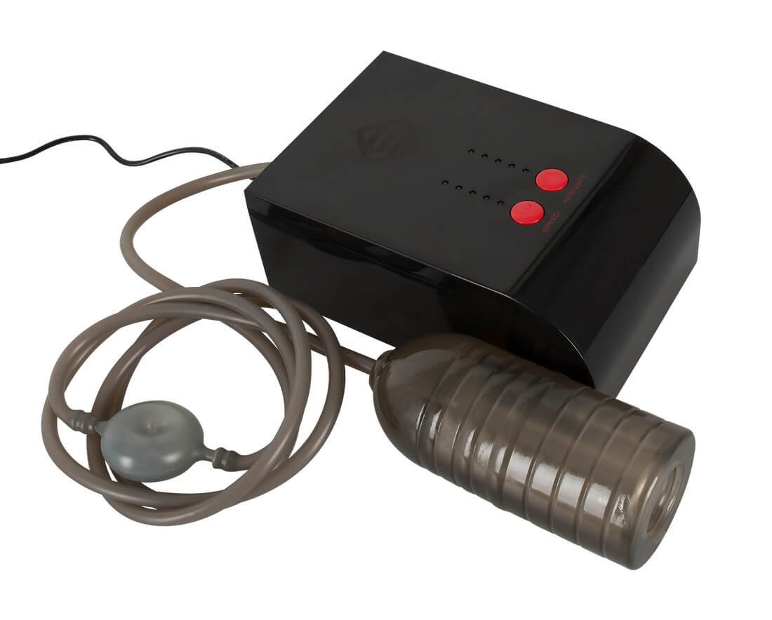 The powerful SUCK-O-MAT electric motor is protected in a stylish black case. The surface has the appearance of a lacquered piano. Thanks to the travel dimensions you can enjoy blowjob every day even in the car. The power cord is 2 meters long. Silicone tubing has a total length of 1.5 meters. Of course there is a washable sleeve and also a filter to prevent liquids from entering the engine.
